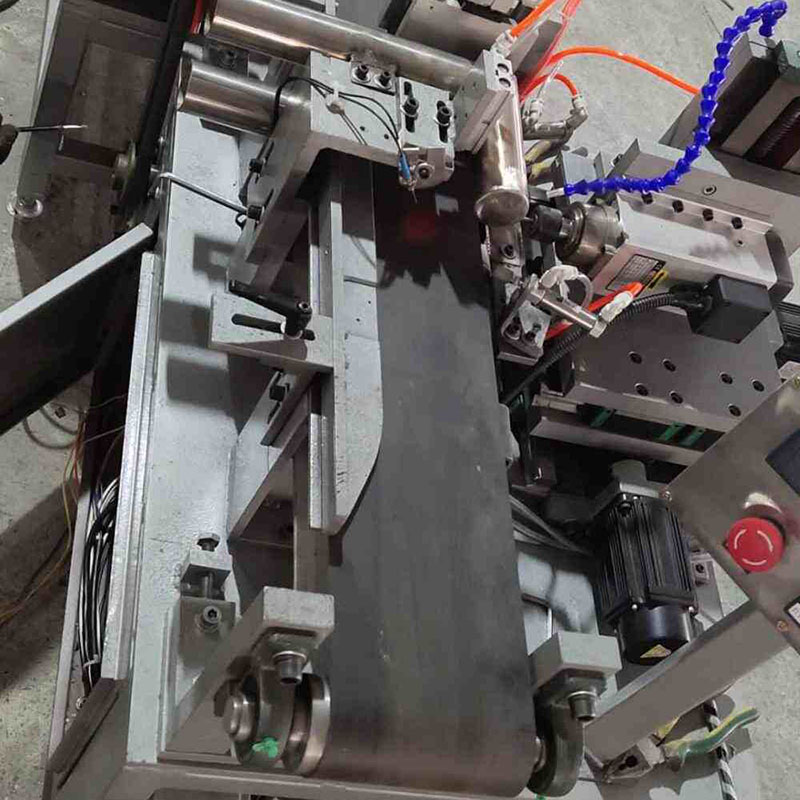 Подача и позиционирование: вручную поместите продукт с тормозной накладкой на конвейерную ленту, первый цилиндр блокирует материал и направляет продукт в положение остановки, а конвейерная лента прекращает движение сразу после того, как продукт оказывается на месте.